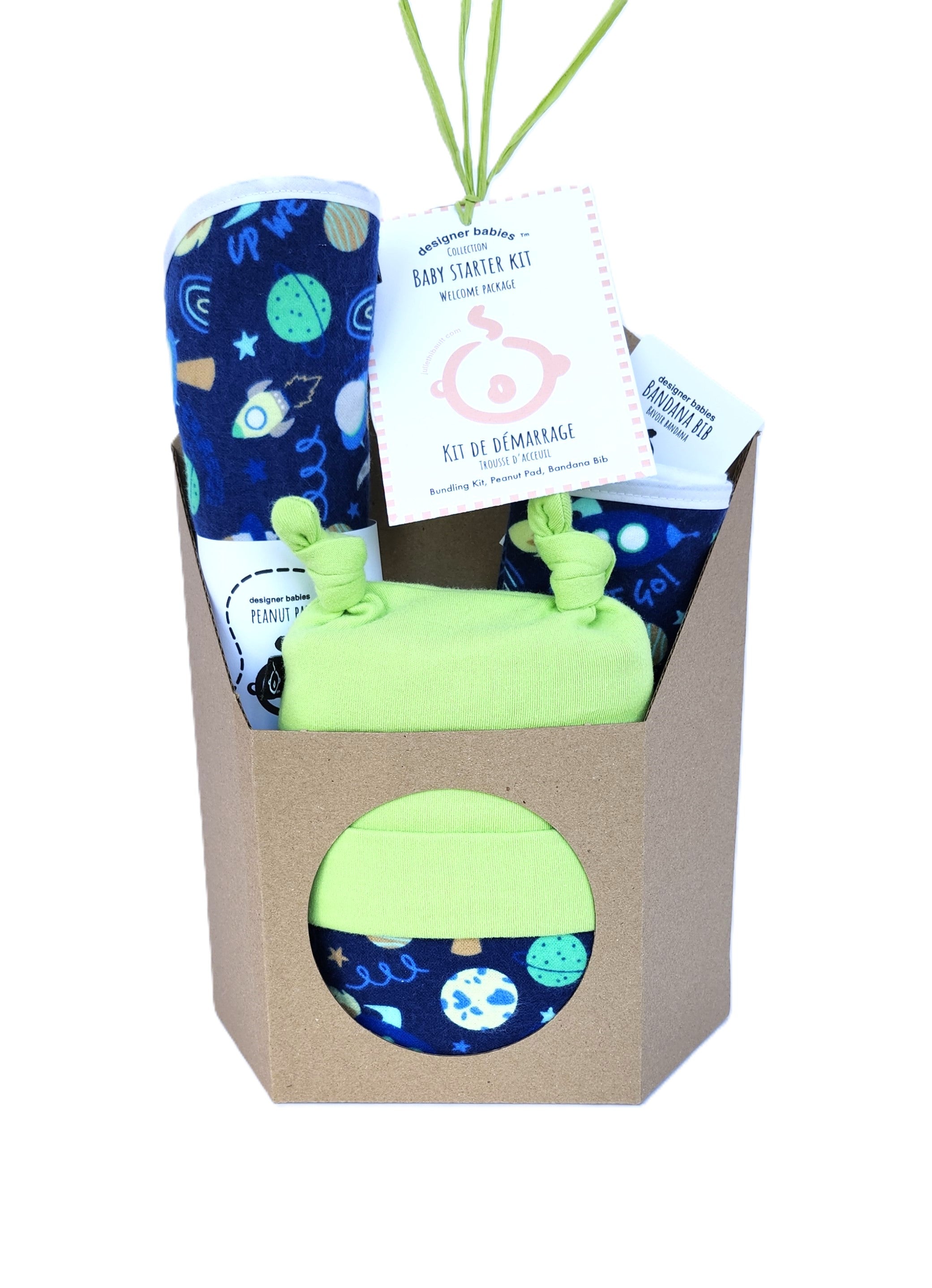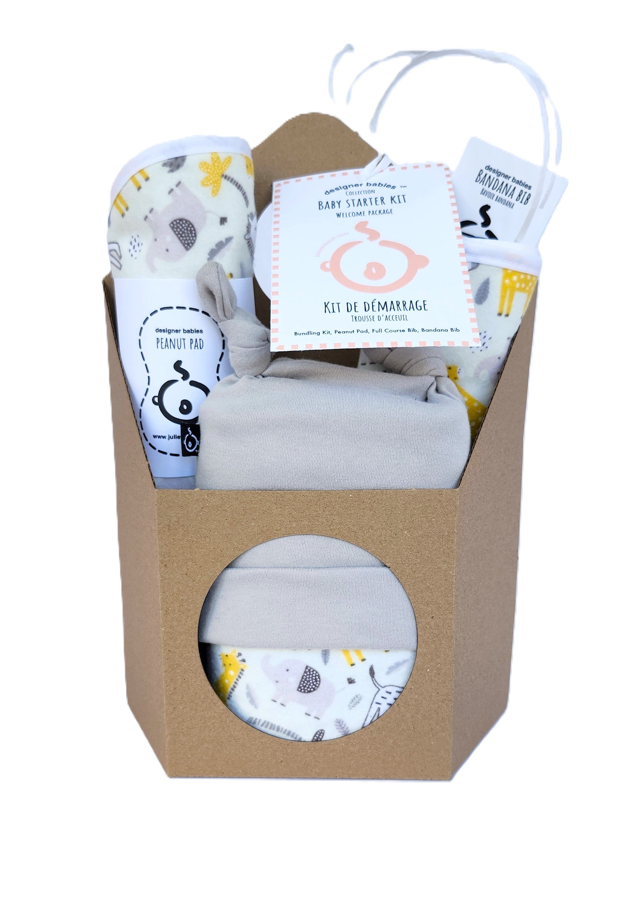 Starter Kits are the latest addition to the designer babies collection. These original, custom designed gift boxes include practical basics ideal to manage day to day activities.